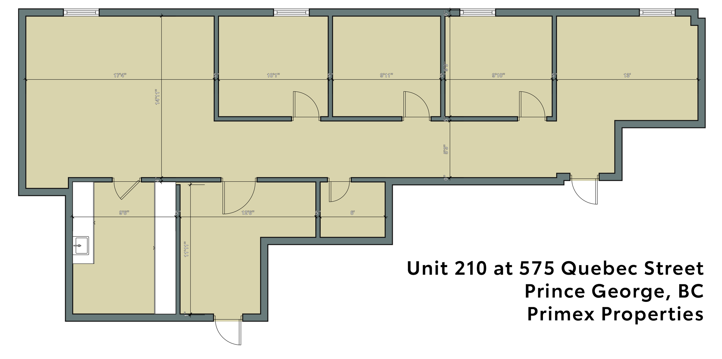 It is on the second floor of the Gateway Centre Building in Prince George, BC. Gateway Centre features free off street parking, and is fully accessible. This unit is in the most recently constructed section of the building, and has its own HVAC system. It has built-in cabinetry and a sink.